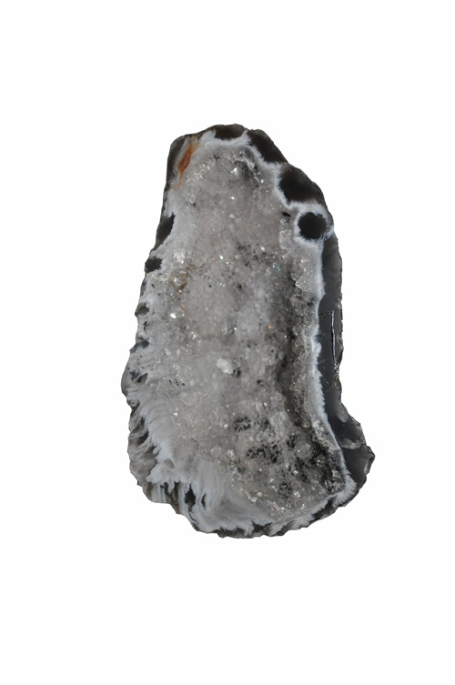 That night he stayed awake, cutting each stone, then setting it aside for polishing. He polished each agate face until it gleamed, complementing the glittering drusies inside.