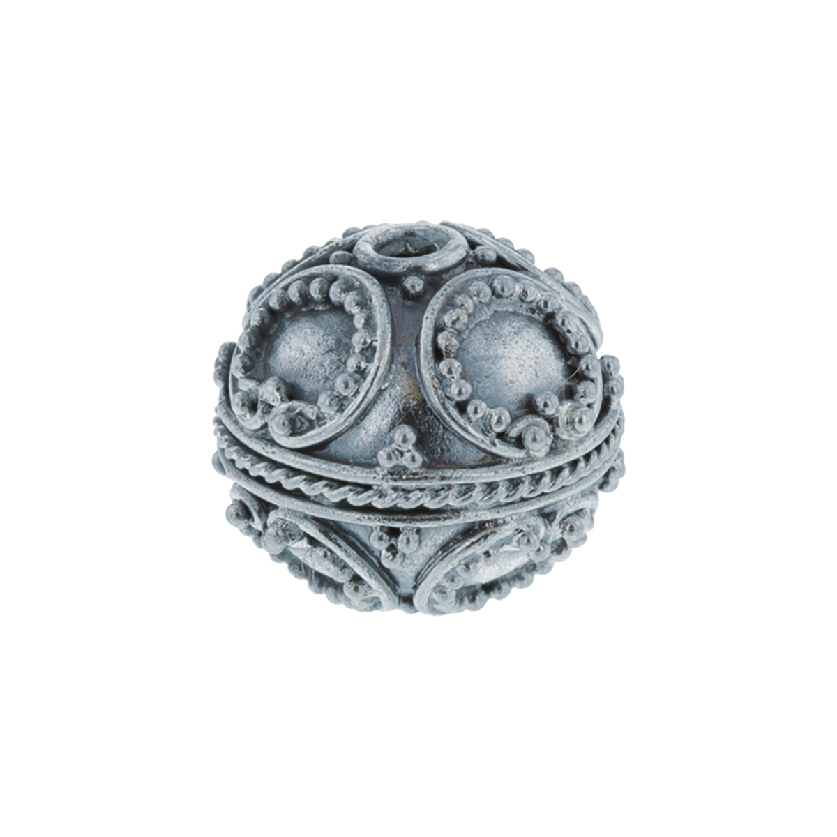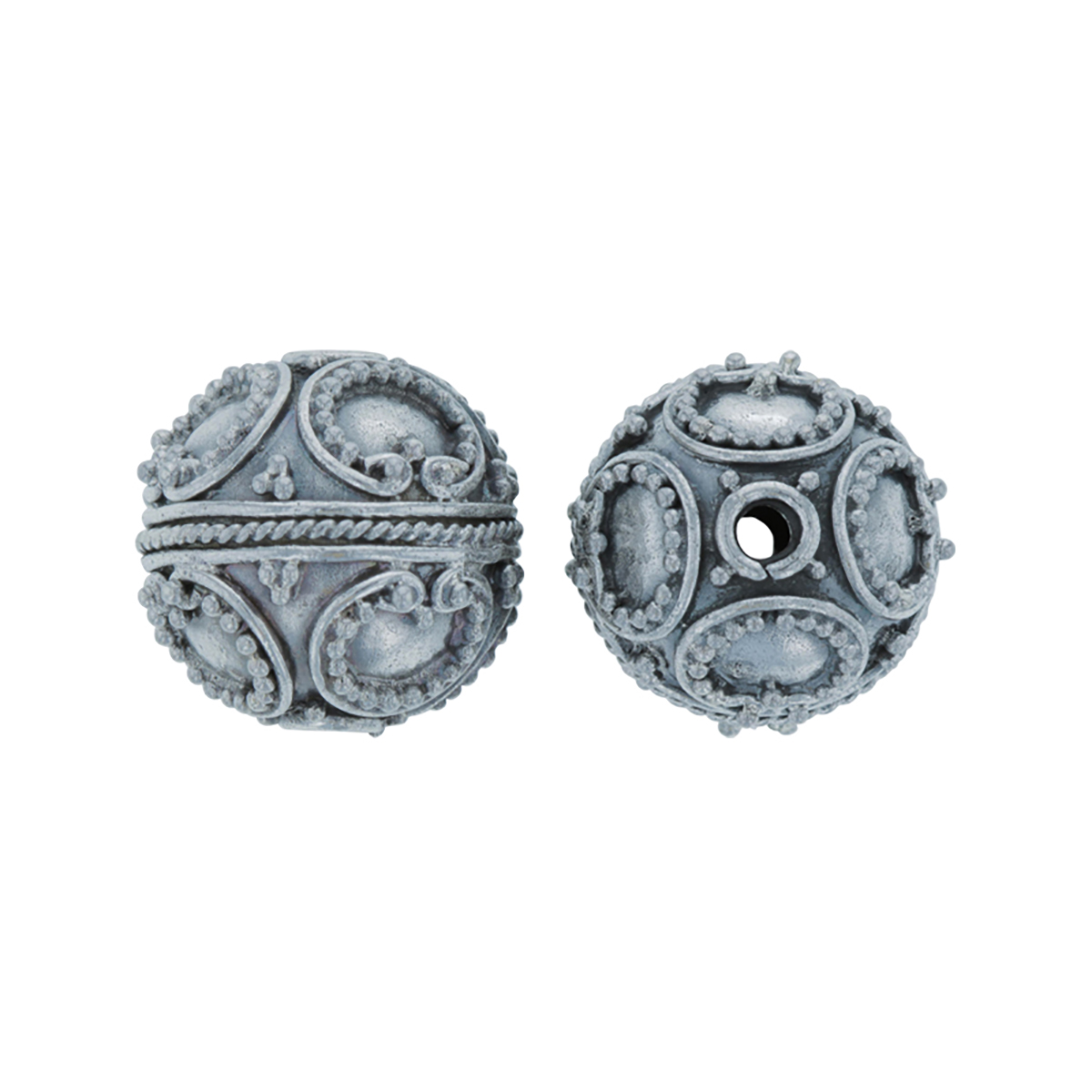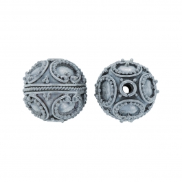 Handmade Sterling Silver Authentic Bali Bead - Antiqued Round Ornate Circles, Pack of 1